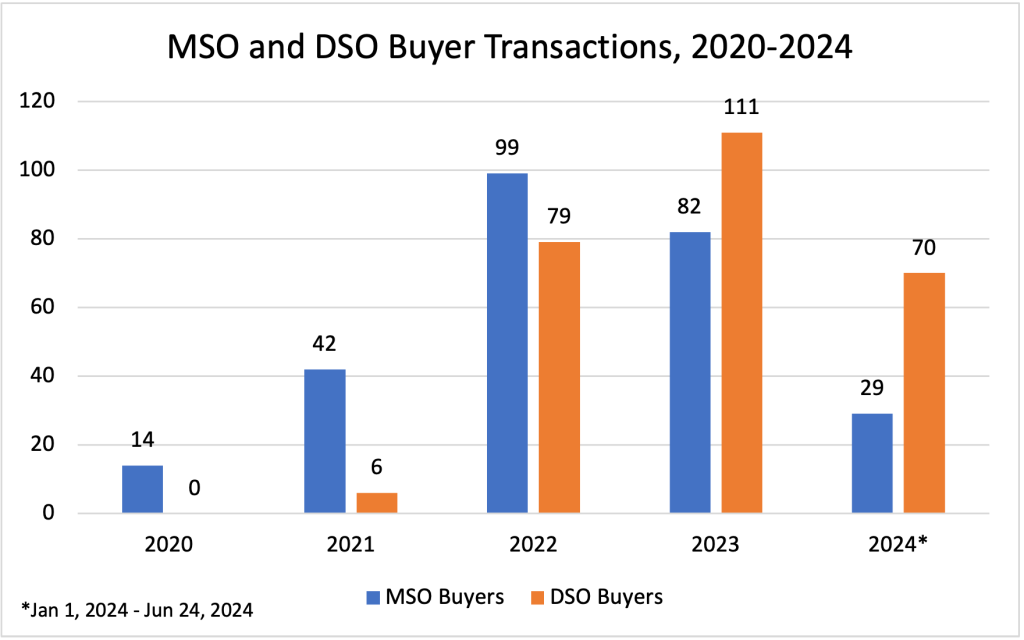 The statistics illustrate a dynamic and growing market. While acquisitions involving MSOs and DSOs as targets have seen fluctuations, the volume of acquisitions by these organizations has been substantial. Going forward, we anticipate that the market will only continue to increase as demand grows.