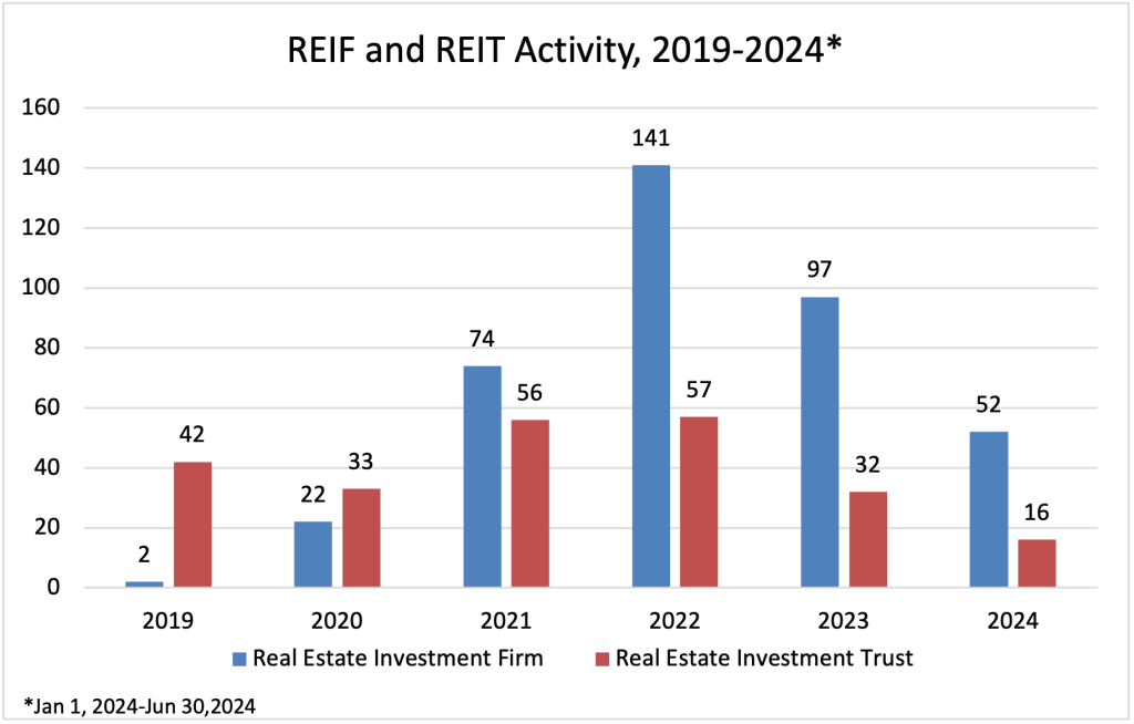 The Real Estate Investment Firm (REIF) and Real Estate Investment Trust (REIT) markets remain among the most dynamic sectors. The first half of 2024 (1H 2024) exemplified this trend, continuing to demonstrate significant activity and engagement.
